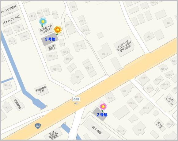 小田急線愛甲石田駅西口を出て、国道246号線を南へ徒歩約10分